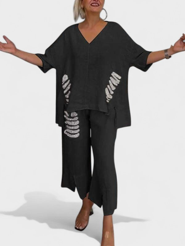 Raisa - V-Ausschnitt Zweiteiliges Set Für Sommer